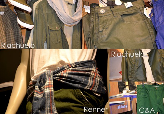 As vitrines do Shopping Uberaba exibem peças e acessórios essenciais para consolidar as referências militares. Buscamos em várias lojas itens para compor duas produções com essas influências.